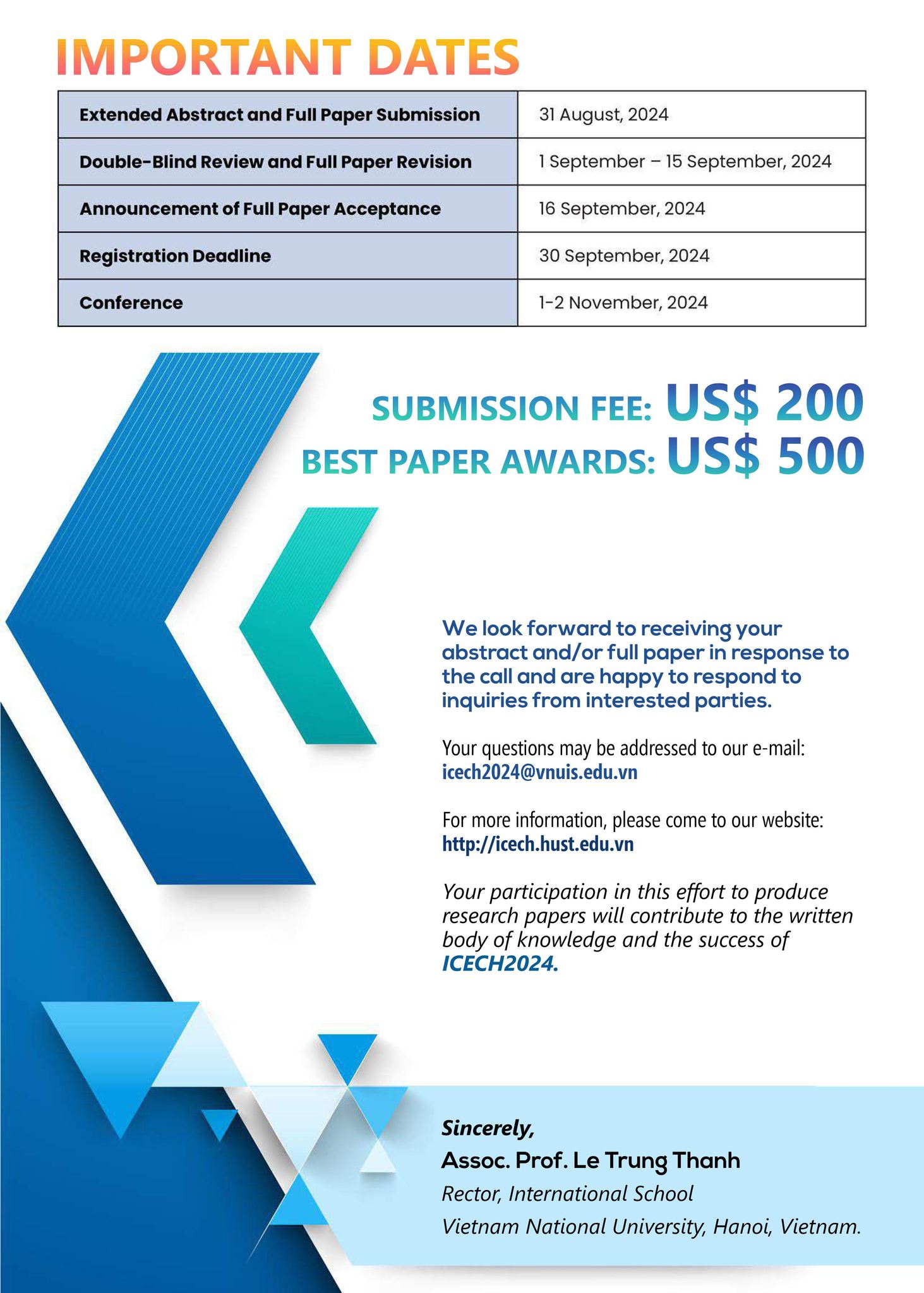 Một số mốc thời gian của hội thảo ICECH 2024: