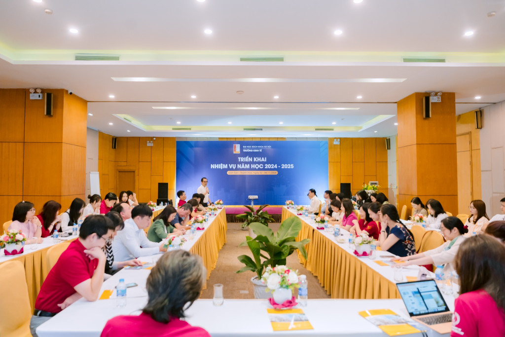 Tập thể cán bộ trường Kinh tế tham gia tập huấn và triển khai nhiệm vụ năm học 2024 – 2025