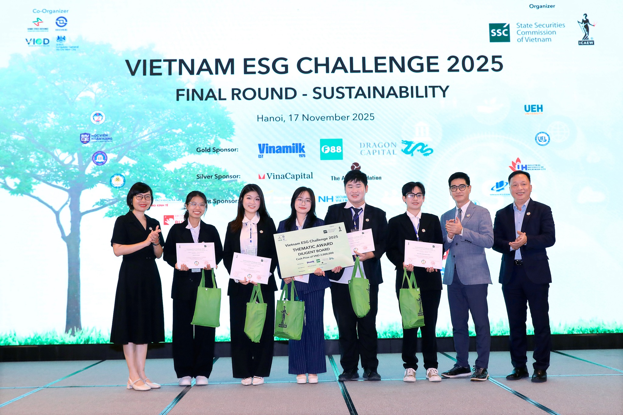 Cuộc thi “Quản trị Công ty hướng tới Phát triển Bền Vững” (Vietnam ESG Challenge) do Ủy ban Chứng khoán Nhà nước Việt Nam (SSC) phối hợp cùng Viện Kế toán Công chứng Anh và xứ Wales (ICAEW) tổ chức là một sân chơi học thuật uy tín dành cho sinh viên các trường đại học trên toàn quốc, nhằm nâng cao hiểu biết về ESG và quản trị doanh nghiệp bền vững. Năm 2025, cuộc thi tiếp tục ghi dấu với sự tham gia của hàng nghìn sinh viên, thể hiện sự lan tỏa ngày càng mạnh mẽ của các giá trị phát triển bền vững trong cộng đồng sinh viên.