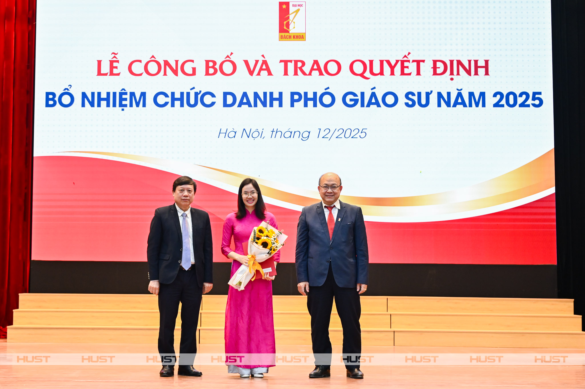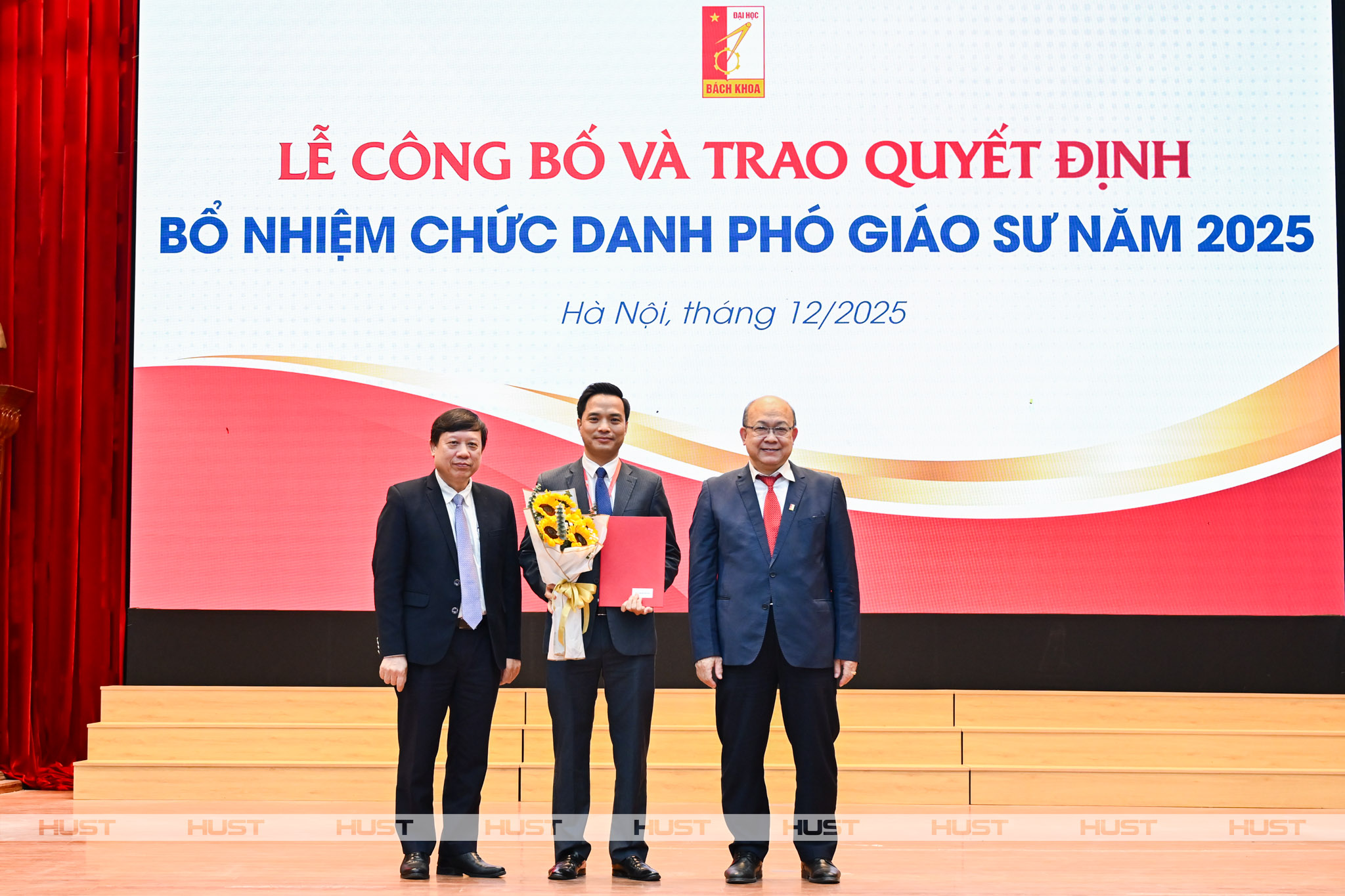 Ngày 29/12/2025, tại Hội trường C2, Đại học Bách khoa Hà Nội đã long trọng tổ chức Lễ công bố và trao quyết định bổ nhiệm chức danh Giáo sư, Phó Giáo sư năm 2025 cho 30 cán bộ, giảng viên xuất sắc. Buổi lễ diễn ra trong không khí trang nghiêm, thể hiện sự trân trọng đối với đội ngũ trí thức và đánh dấu bước phát triển quan trọng về chất lượng học thuật của Nhà trường.