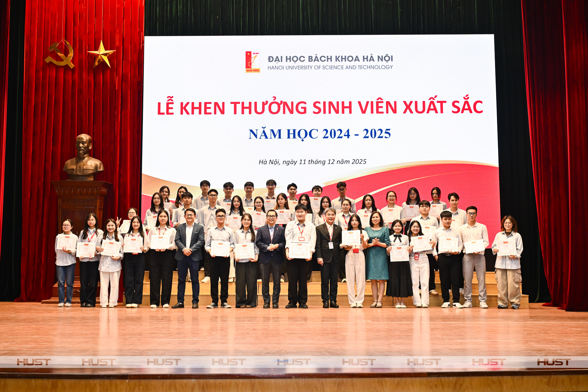 Ngày 11/12, tại Hội trường C2, Đại học Bách khoa Hà Nội đã long trọng tổ chức Lễ vinh danh Sinh viên xuất sắc năm học 2024–2025. Đây là sự kiện đặc biệt nhằm ghi nhận và tôn vinh những nỗ lực nổi bật trong học tập, rèn luyện và cống hiến của sinh viên toàn Đại học.