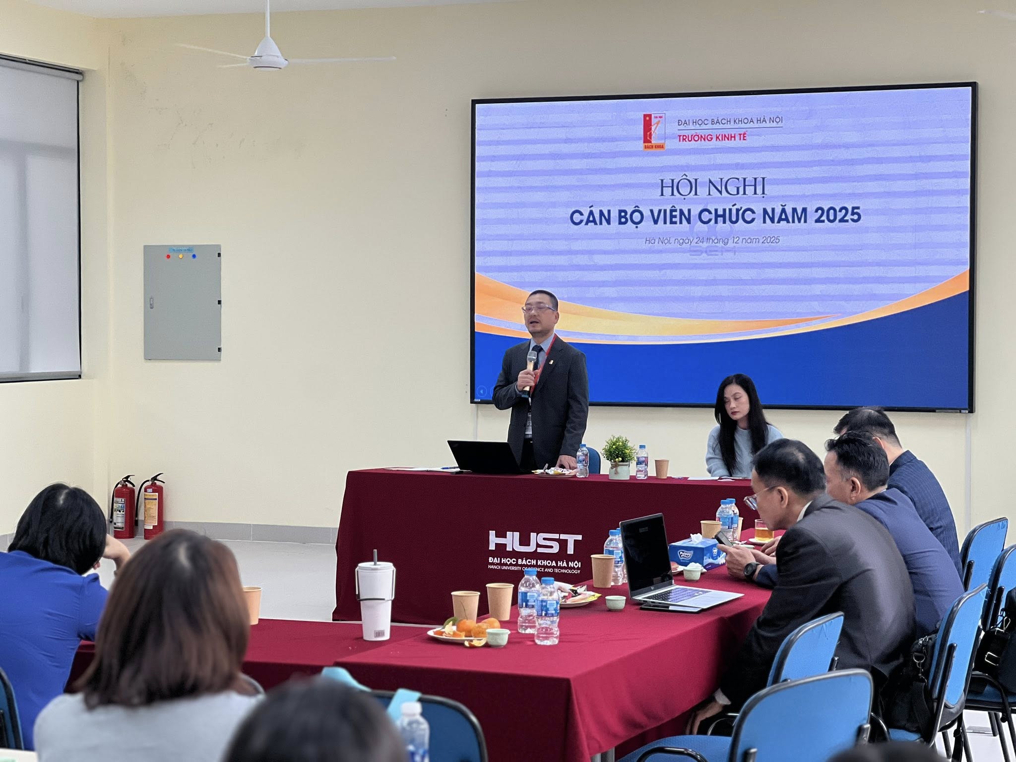 Sáng ngày 24 tháng 12 tại phòng họp 410 toà C9, Hội nghị Cán bộ Viên chức Trường Kinh tế năm 2025, đã được tổ chức thành công với sự tham dự của PGS. TS. Huỳnh Quyết Thắng – Giám đốc Đại học Bách khoa Hà Nội và toàn thể cán bộ, viên chức Trường Kinh tế.