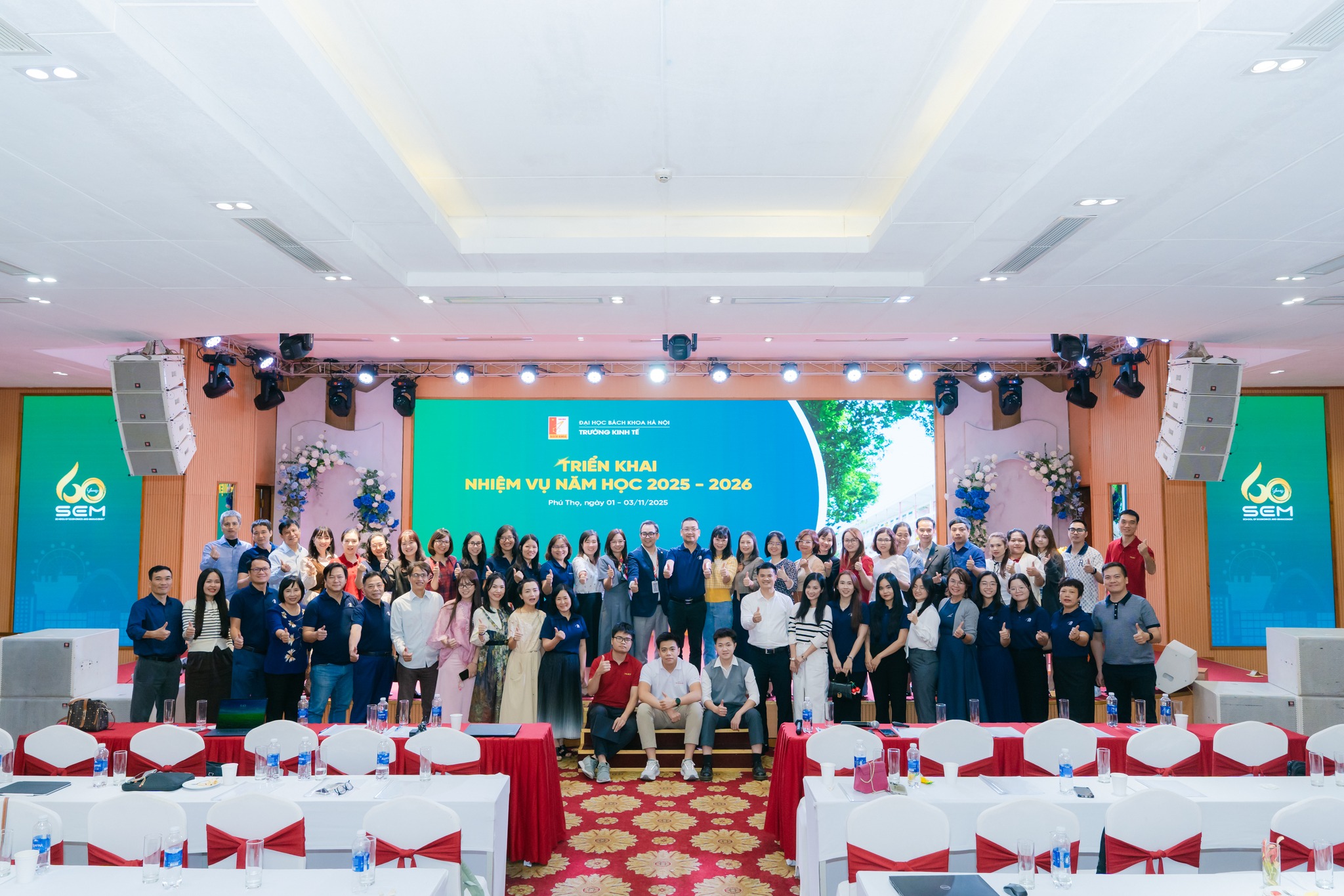 Trong hai ngày 01–02/11/2025 tại Hòa Bình, Trường Kinh tế – Đại học Bách khoa Hà Nội đã tổ chức thành công chương trình tập huấn và họp triển khai nhiệm vụ năm học 2025–2026 với sự tham gia đầy đủ của đội ngũ cán bộ, giảng viên và chuyên viên Nhà trường. Chương trình không chỉ là dịp tổng kết, đánh giá những kết quả đạt được trong năm học vừa qua mà còn là bước chuẩn bị quan trọng nhằm thống nhất định hướng, chiến lược phát triển cho năm học mới.