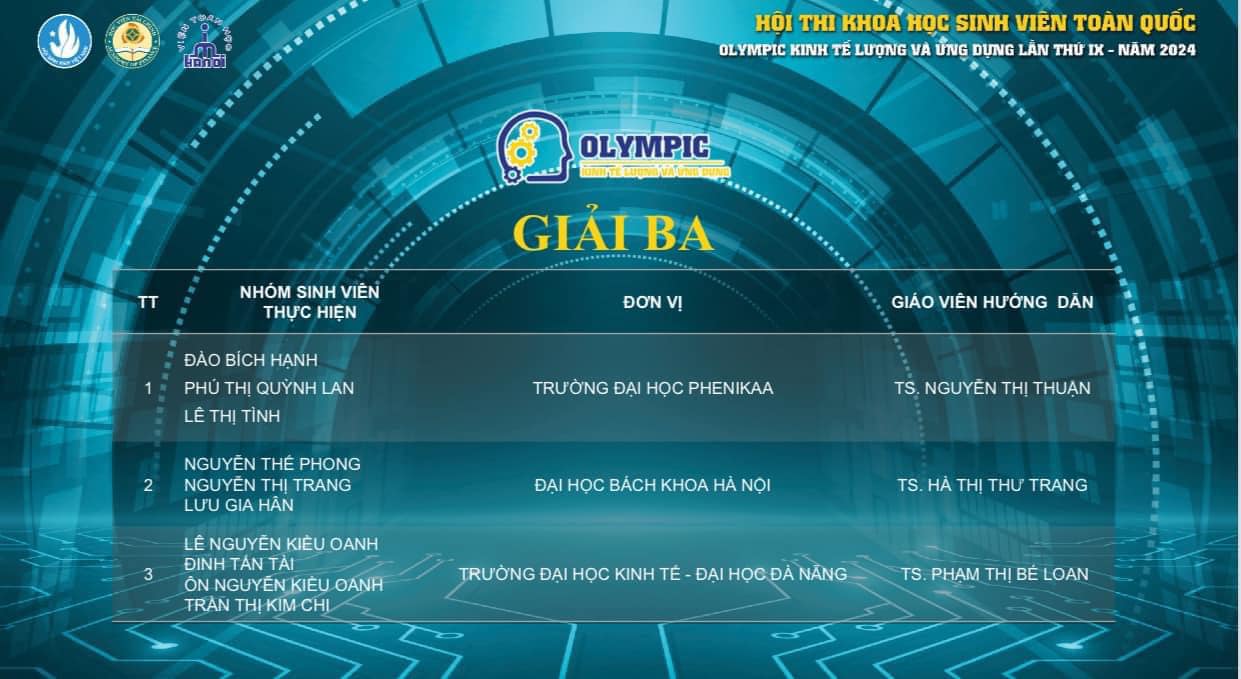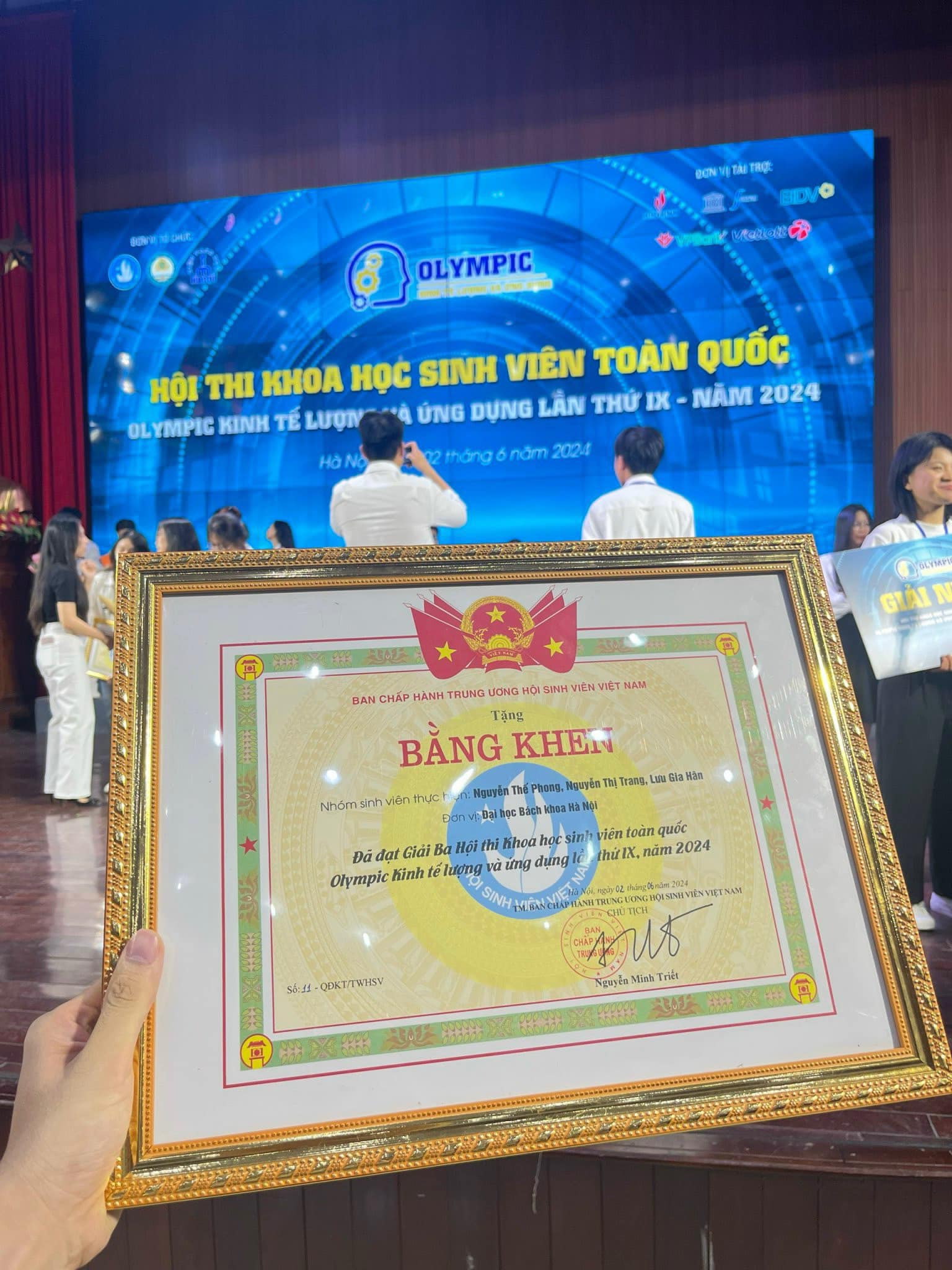 đã xuất sắc được nhận giải 3 cuộc thi Olympic Kinh tế lượng Toàn quốc 2024.