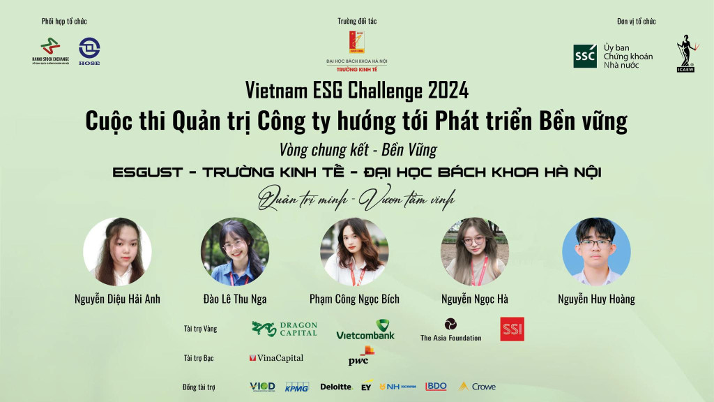 Chúc mừng ESGUST sẽ đại diện trường Kinh tế tham gia Vietnam ESG Challenge 2024 vòng Chung kết vào ngày 01/11/2024 tới đây tại Hà Nội